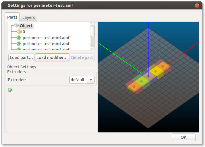 This has already been researched before, but I decided to investigate it further. This time I used RapCAD to generate the test pieces since its multi-material support made creating the Slic3r print modifiers a doddle.