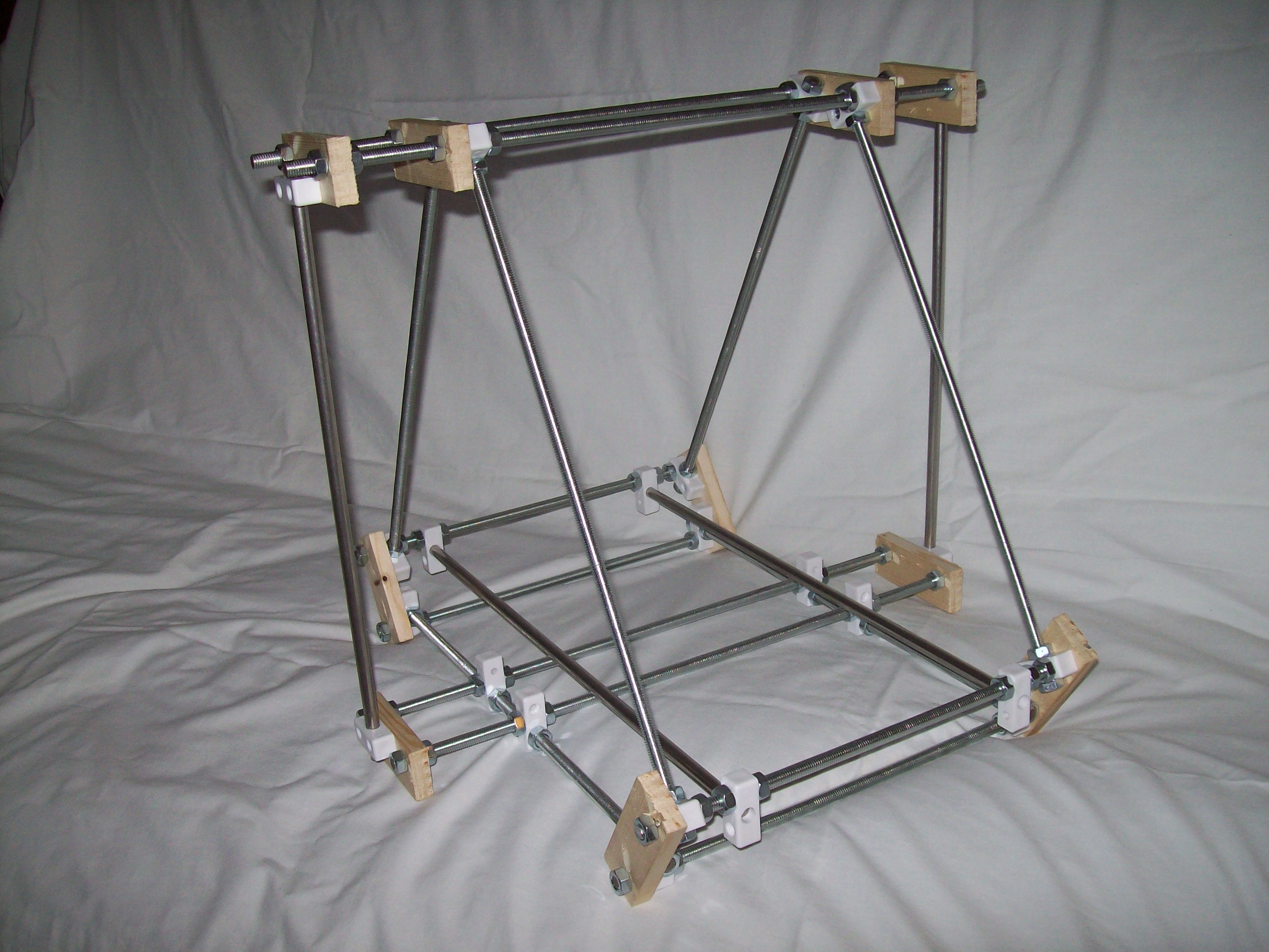 Inspired by Bodge-its Mendel Repstrap, I am building a repstrap which overlaps as much as possible with Mendels Bill of Materials. The idea being that I can print the needed 3d parts, with the repstrap, then dismantle the repstrap and build Mendel, without having to have bought lots of extra parts and materials.