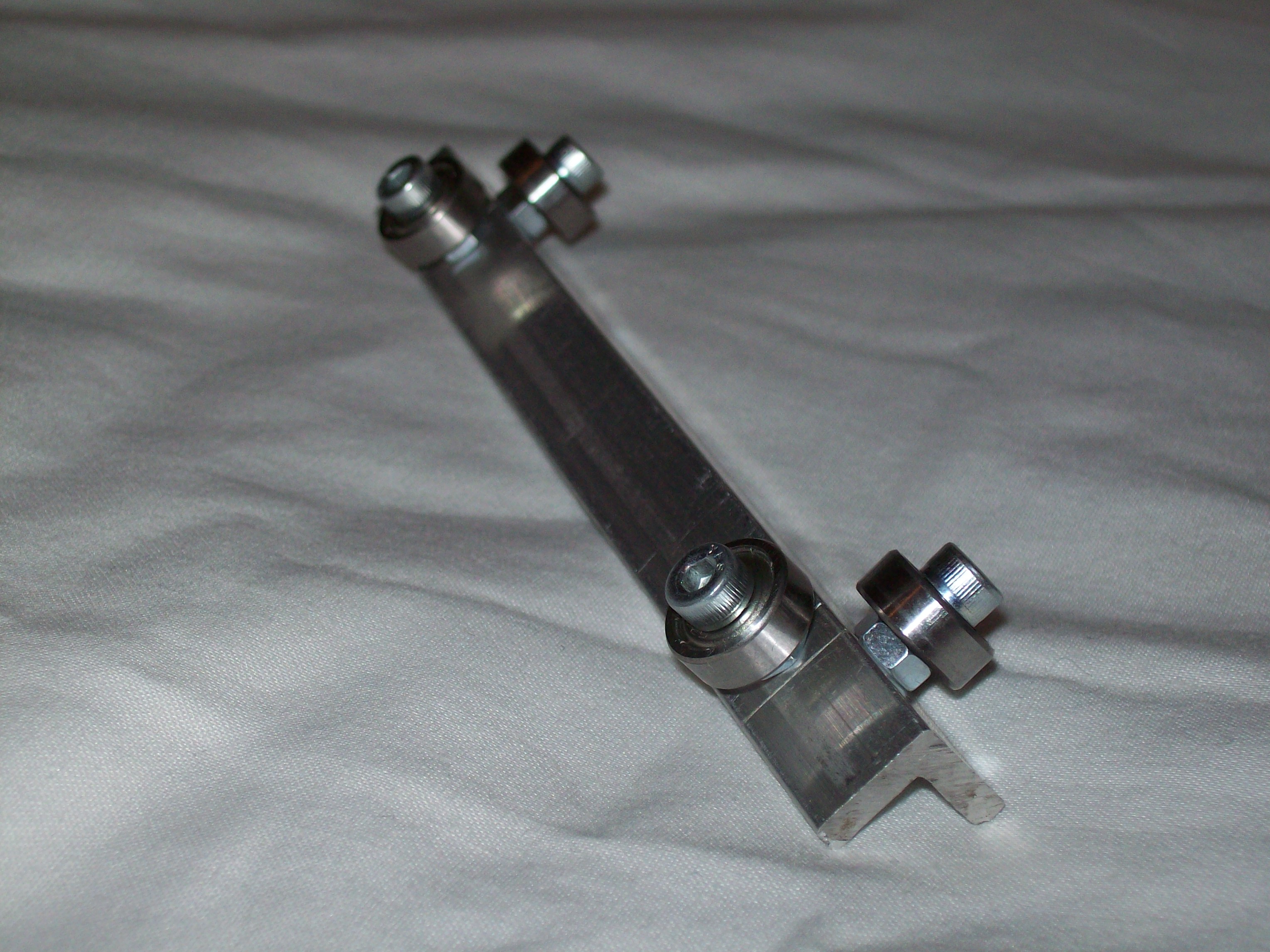 The main reason my plans for this repstrap deviate from the work being done by bodgeit was because he uses 606 bearings. I wanted to use the M4 bearings that are part of the Mendel Bill of materials. Instead I have made these skates inspired by those used in the build your cnc project.