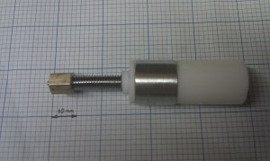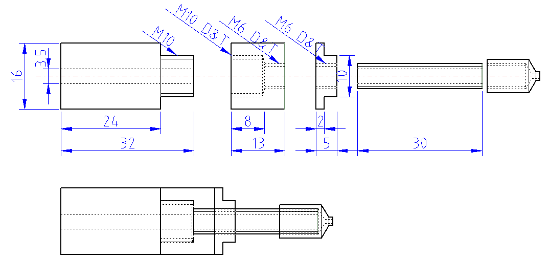 I came up with a drilling methodology that I think keeps things as concentric and true as possible when using a drill stand. The first step is to drill a 16mm hole into a piece of wood, which acts as a work piece clamp. The PEEK was a tight fit in the piece of wood, since it was slightly over 16mm, I tapped into place with a hammer. Next I drilled a blind 8.5mm dia hole to a depth of 25mm. I found it was better not to drill a pilot hole as then the piece would turn in the holding jig. I tapped the hole to M10 using a taper tap followed by a plug tap, as I wanted to get the thread as close as possible to the bottom. I had already prepared a length of M10 threaded PTFE which I cut longer than needed so that I could screw it in and use the protruding part to screw it in extra tight. I cut the PTFE flush and drilled a 3.5mm hole all the way through the assembled insulator. This 3.5mm hole then acted as a centre so that when I turned the PEEK over I could drill the 5.0mm and Tap to M6.